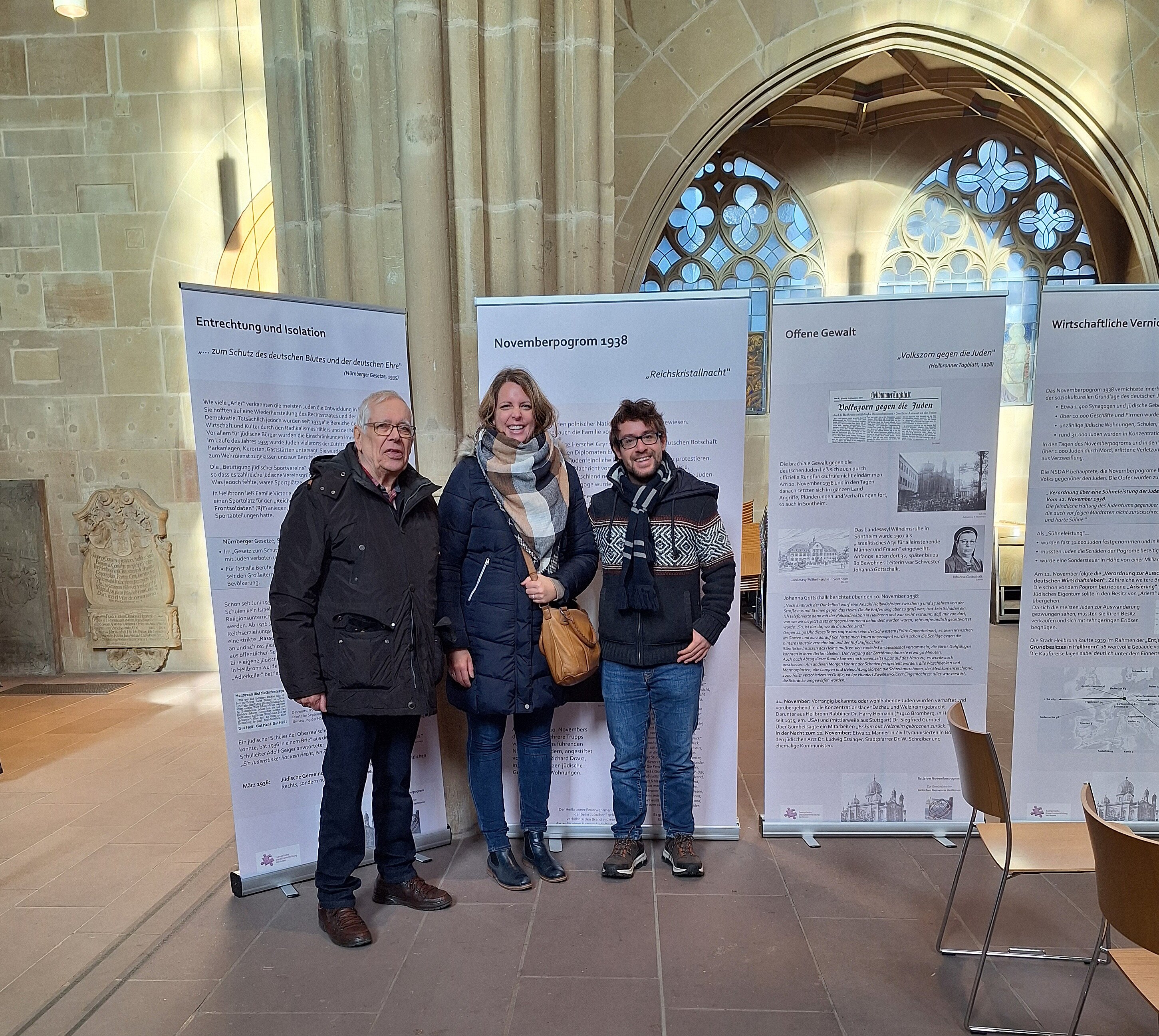 Im Rahmen des Friedensstifterbereichs gegen Antisemitismus und dem VU-Unterricht zum Thema „Interreligiöser Dialog“ haben sich Frau Rau und Herr Farkas gemeinsam mit den Klassen 8c und 9b in die Innenstadt von Heilbronn begeben. Dabei durchliefen sie den „Actionbound“ zu jüdischem Leben in Heilbronn, eine digitale Schnitzeljagd zu verschiedenen Stationen wie z.B. die ehemalige Synagoge, die Ansiedlung der ersten jüdischen Familien in der Lotharstraße sowie die Stolpersteine, die an deportierte und ermordete jüdische Personen erinnern. Zu den vom "Freundeskreis Synogoge Heilbronn e.V." veranstalteten jüdischen Kulturtagen 2024 besuchten die Schülerinnen und Schüler im Anschluss die dazu passende Ausstellung in der Kilianskirche. Herr Schmidt, ehemaliger Gymnasiallehrer, Mitglied des Freundeskreises und Kenner der jüdischen Geschichte Heilbronns, gab ihnen einen interessanten Einblick in die lokalen historischen Begebenheiten sowie dem Antisemitismus in der Zeit des Nationalsozialismus. Die Ausstellung ist noch bis zum 28.11. in der Kilianskirche zu besichtigen, weitere Veranstaltungen zu den jüdischen Kulturtagen 2024 finden sich auf der Internetseite des Freundeskreises: https://www.fk-synagoge-hn.de/juedische-kulturtage-2024/