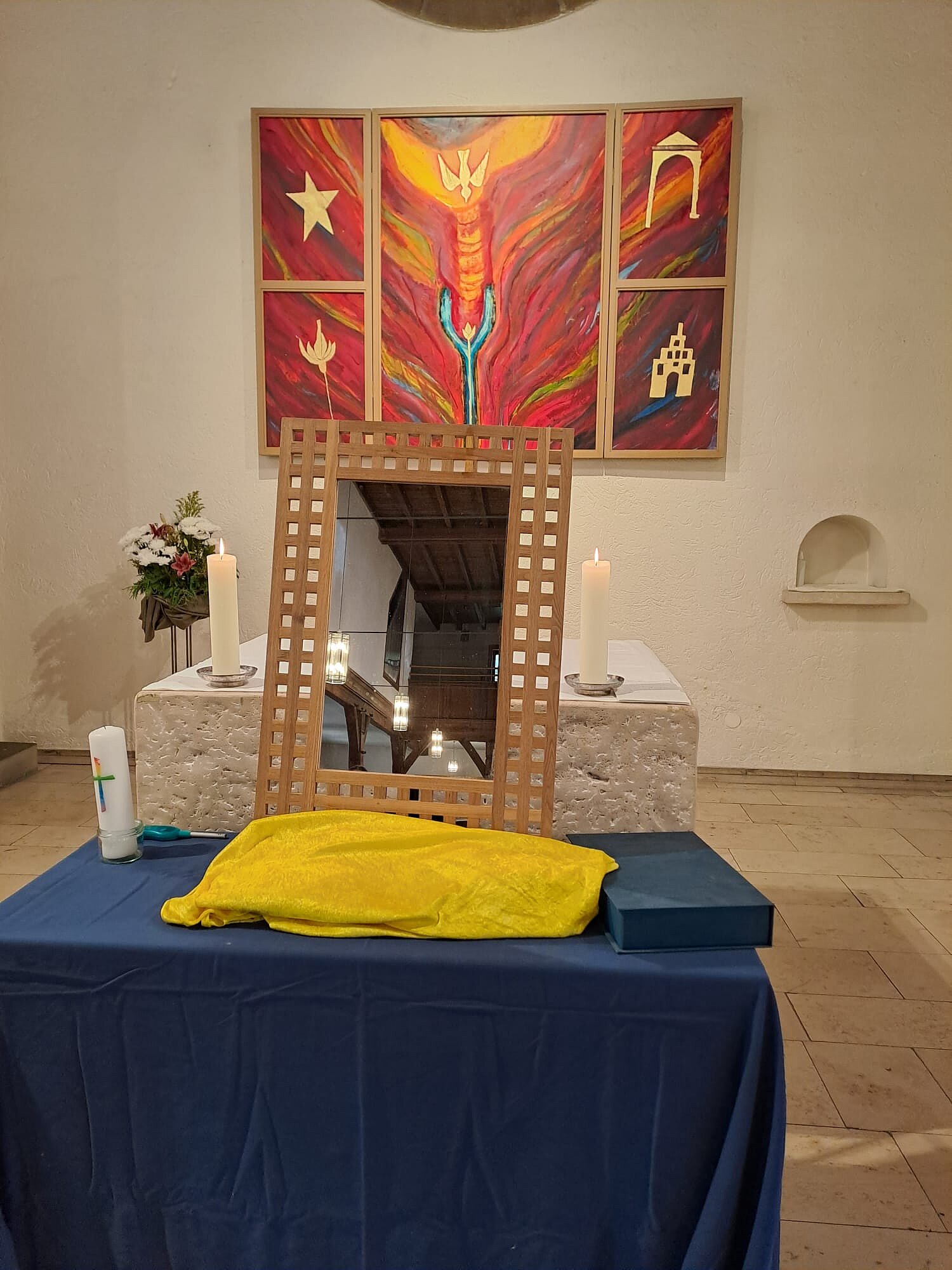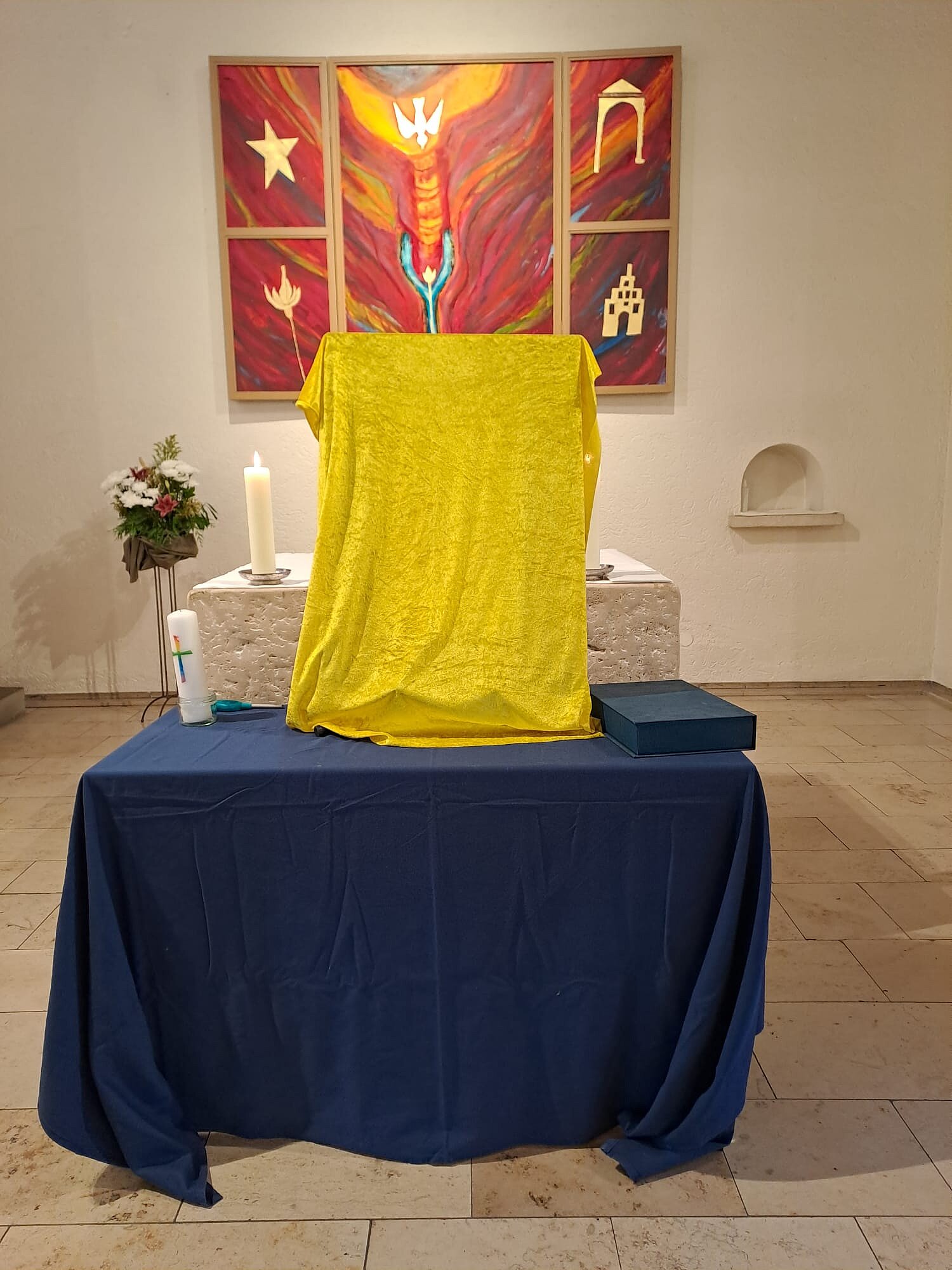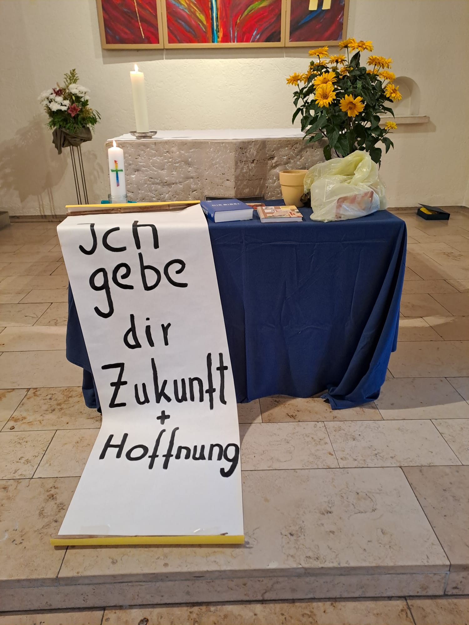 Mit einem dreistufigen Altarbild wurden wir letzte Woche durch die Gottesdienste geführt.