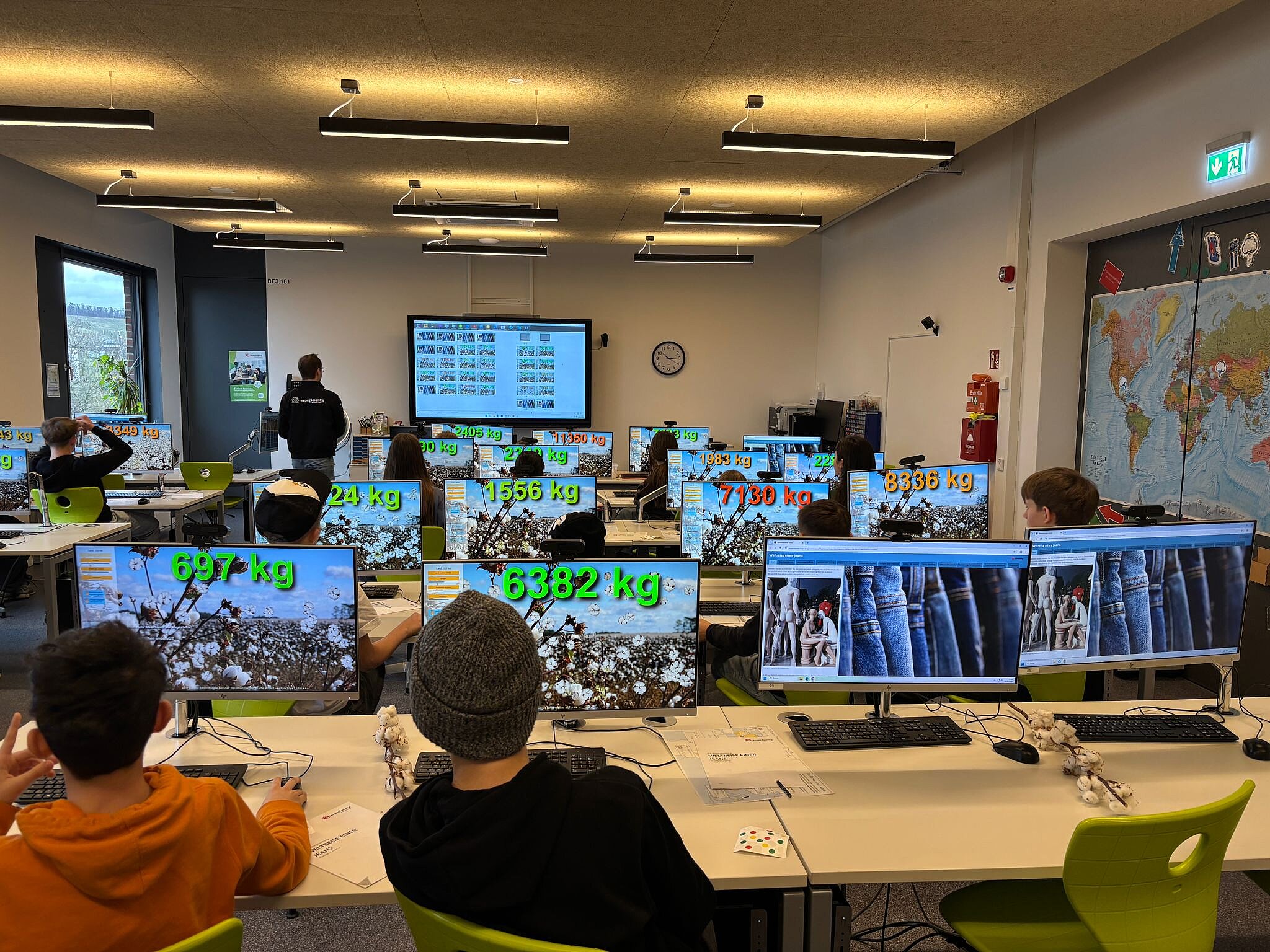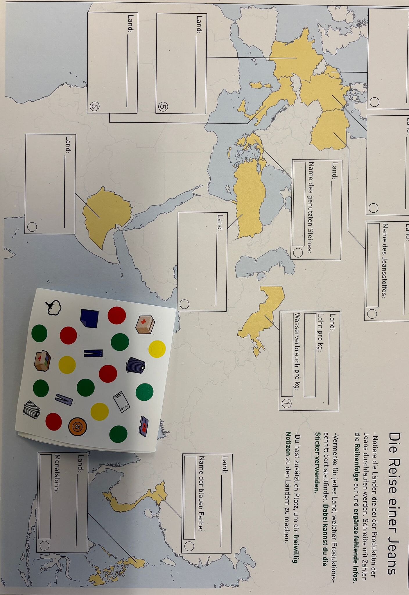 Im Workshop „Weltreise einer Jeans“ schlüpften die Schülerinnen und Schüler in die Rolle von Detektiven der globalen Textilwirtschaft. An verschiedenen Stationen verfolgten sie den Weg der Baumwolle vom Feld über die Spinnerei und Färberei bis hin zur fertigen Hose.
